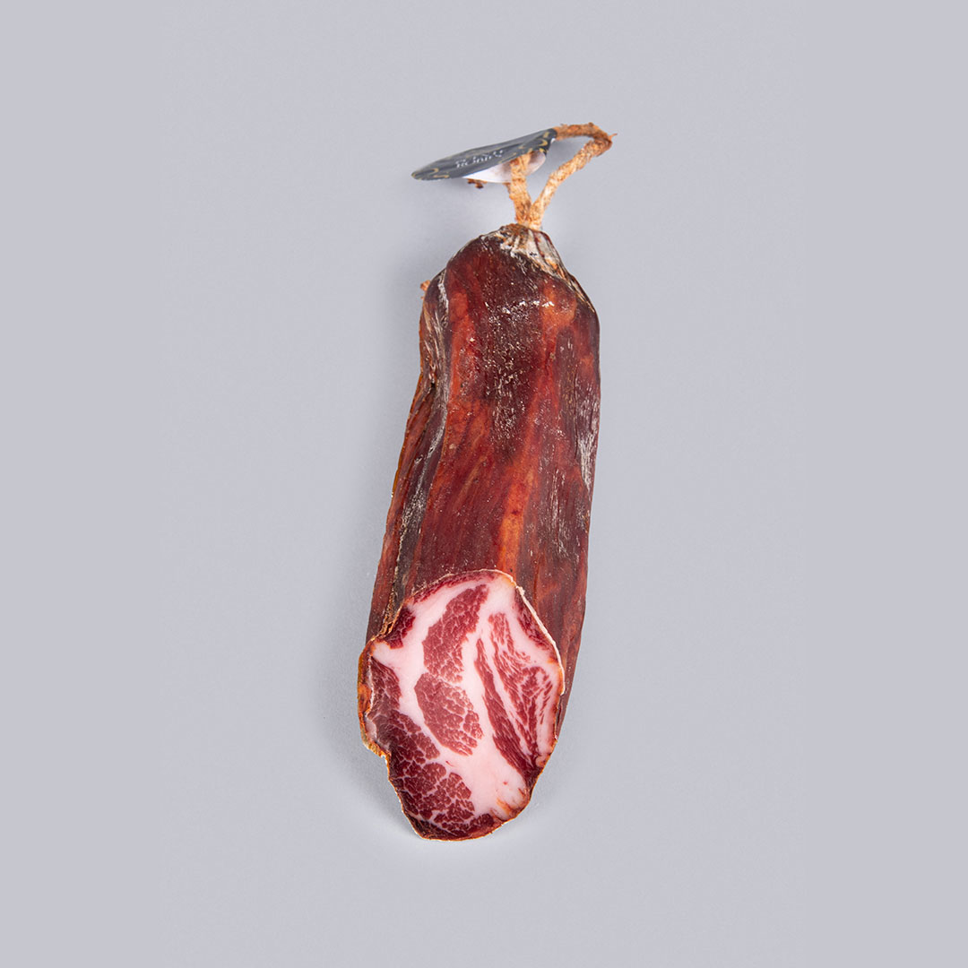 Ce Cabecero de Lomo est le fruit d'un élevage minutieux de porcs nourris avec des aliments naturels et des céréales, ce qui lui confère sa saveur et sa texture.
