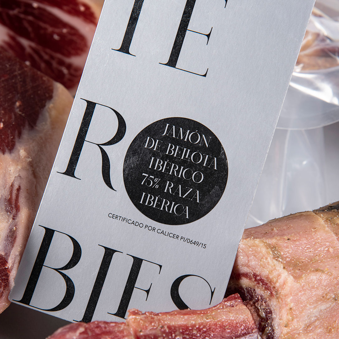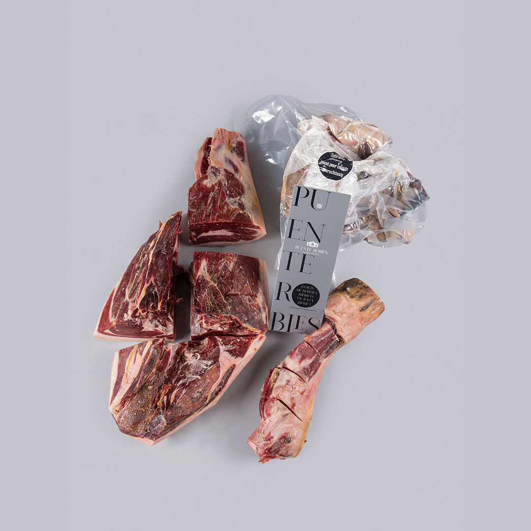 Ce jambon 75 % ibérique est le résultat de l'élevage minutieux de porcs ibériques nourris principalement de céréales et de glands, ce qui lui confère sa saveur unique et sa texture délicate.