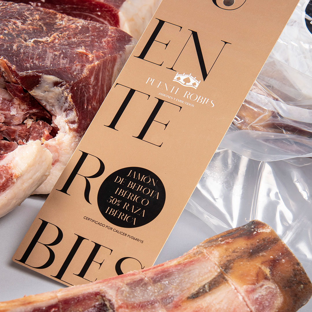 Jambon ibérique obtenu à partir des pattes arrière de porcs ibériques de race pure à 50 %.