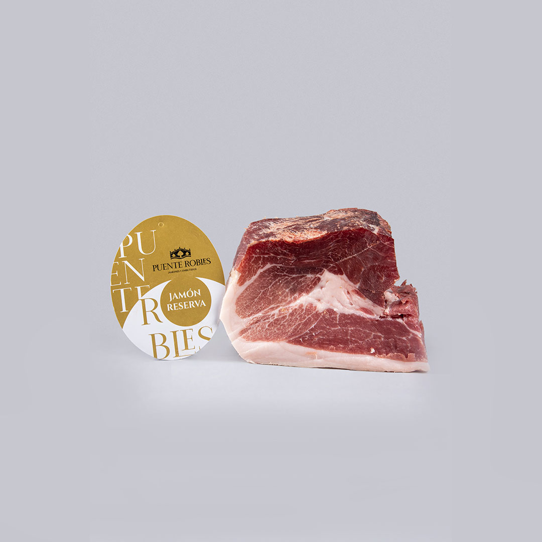 Le talon de Jambon Reserva est obtenu à partir de porcs nourris avec des aliments naturels, achetés dans de petites exploitations de Zamora et d'Arribes del Duero.